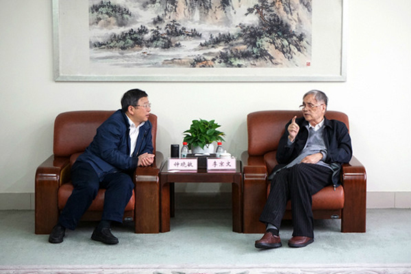 钟晓敏代表学校对李京文的到来表示热烈欢迎,感谢他多年来对学校改革发展的关心和支持。钟晓敏简要介绍了学校人才培养、学科建设、科研与社会服务等方面的情况,并就学校目前推进的综合改革、申报博士学位授予单位工作进展情况等向李院士作了汇报。