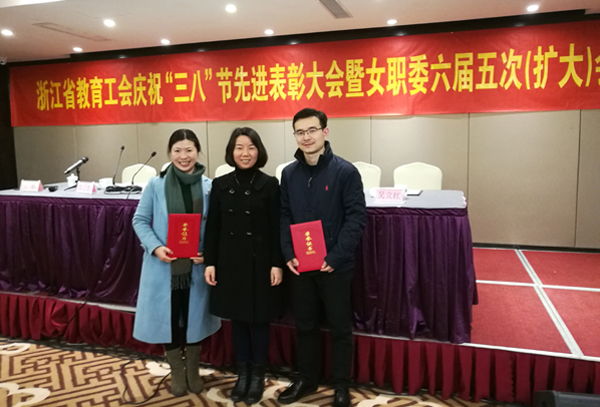 本网讯(通讯员 金辉)近日,省教育工会召开庆祝“三八”节先进表彰大会,表彰浙江省教育系统第十四届“事业家庭兼顾型”先进个人。我校陈远高、杨连芳两位老师获此殊荣。