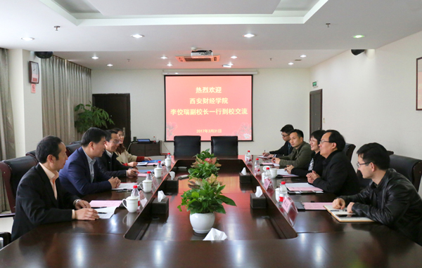 本网讯 3月31日下午,西安财经学院副校长李佼瑞一行来我校考察交流,校领导李金昌、黄建新热情会见了客人。