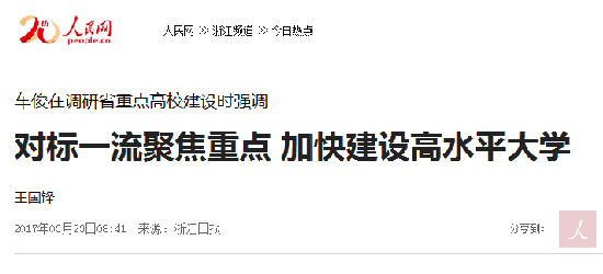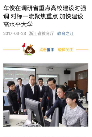 浙江日报:2017年3月22日第一版《对标一流聚焦重点 加快建设高水平大学》http://zjrb.zjol.com.cn/html/2017-03/23/content_3043820.htm?div=-1