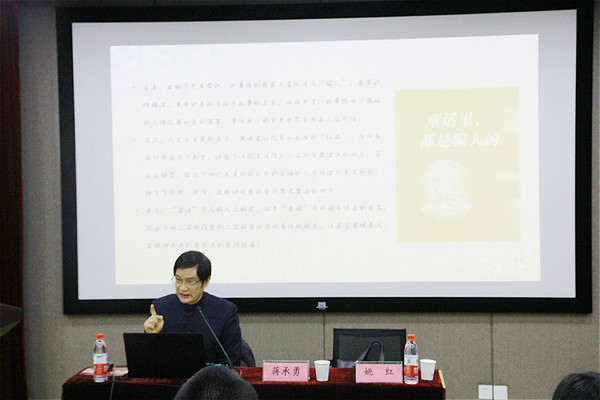 在随后举行的大讲堂活动中,蒋承勇教授以《“山色有无中”——人文精神与我们的距离》为题,解读了通识教育与大学人文精神的培养。蒋教授列举了当下社会、大学中存在的种种问题,认为这些问题的根源之一就在于人文精神的缺失。他从人文精神的内涵与作用等多方面阐述了何为人文精神,并指出人文精神的培养恰恰就是通识教育的题中之义,相对于专业教育,通识教育则更为重要。蒋教授在讲座中旁征博引,妙语连珠。他将大学教育浓缩为八个字——“专业成才,精神成人”,并以世界的一流大学如哈佛大学、斯坦福大学、麻省理工学院为例,分析了“没有一流的人文教育,就没有一流的大学”的观点。最后,蒋教授根据自己推行通识教育的经验讲述了应该如何在大学更好地开展通识教育,培养学生的人文素养,提高整个社会的人文精神。