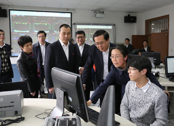 在参观金融工程与金融风险实验室、模拟银行实训基地时,车俊省长与师生亲切交谈,并对学院提出了要求:“现代金融是现代经济的核心,是浙江省“十三五”和未来规划的重点,你们参与钱塘江金融港湾发展规划的编制还不够,你们更要参与到金融港湾的建设发展中去。”他勉励浙财学子要好好学习,争取成为国家的金融人才、国际的金融人才,并积极投身于浙江的金融事业中。