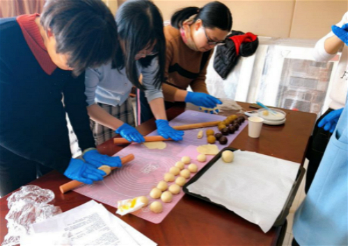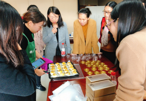 活动现场,烘焙师向教职工们详细讲解了怎样挑选食材和烘焙注意事项,并现场演示了如何制作蛋黄酥。在烘焙师的悉心指导下,大家自己动手,亲身体验,和面、擀皮、捏馅儿……忙得不亦乐乎。经过近半小时的等待,一盘盘香飘四溢的蛋黄酥呈现在教职工们的面前,让大家感到满满的成就感。