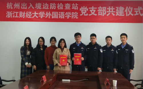 本网讯 12月19日,外国语学院学生党支部与杭州出入境边防检查站执勤业务一科党支部举行结对共建仪式。杭州出入境边防检查站执勤业务一科党支部书记马義超、外国语学院党委副书记林凡等出席共建仪式。